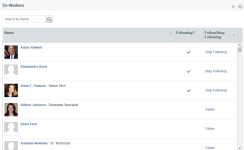 Um einem Kollegen nicht mehr zu folgen, klicken Sie in der Spalte Follow/Stop Following auf Stop Following. Klicken Sie bei der Bestätigungsmeldung auf OK.