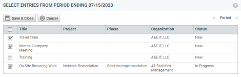 - Wählen Sie die Kontrollkästchen für Einträge aus, die Sie hinzufügen möchten, oder wählen Sie das Kontrollkästchen in der Spaltenüberschrift, um alle Einträge auszuwählen.