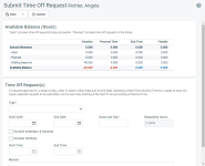 Der verfügbare Saldo entspricht dem jährlichen Zeitguthaben, minus alle Stunden, die verwendet wurden, geplant oder auf Genehmigung warten.