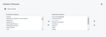 Die Spalten erscheinen entweder im Bereich Verfügbare Spalten oder Ausgewählte Spalten.