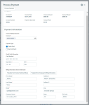 Das Fenster Zahlung verarbeiten kann über eine individuelle Rechnung oder über das Kontextmenü der Seite Rechnungshistorie geöffnet werden.