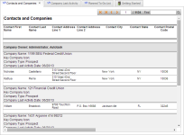 Dieser Bericht bietet Informationen über aktive Firmen und Kontakte. Details beinhalten Namen, Adresse, Telefonnummer und Datum der letzten Aktivität für den Kontakt. Die Option zum Filtern nach dem Datum der letzten Aktivität ist verfügbar. |