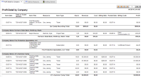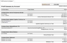 Dieser Bericht bietet zusammenfassende Gewinninformationen nach Firma, Vertrag und Projekt gruppiert. Daten können nach Buchungsdatum gefiltert werden. |