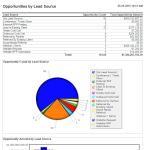 Dieser Bericht beinhaltet ein Diagramm, das die Anzahl und den Betrag der Verkaufschancen nach Lead-Quelle anzeigt. Dies beinhaltet Verkaufschancen, die in einem bestimmten Zeitraum erstellt wurden. |