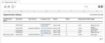 Dieser Bericht bietet eine Übersicht über die Aktivität bei Verkaufschancen, deren Startdatum in einem bestimmten Zeitraum für einen ausgewählten Verkaufschancen-Verantwortlichen liegt. Er zeigt Quellen, Status und Phasen der Verkaufschancen zusätzlich zu der Anzahl der Notizen an, die zu jeder Verkaufschance hinzugefügt wurden. Verkaufschancen ohne Notizen werden nicht in diesem Bericht beinhaltet. |