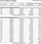 | Beschreibung | Ein Bericht auf Übersichtsebene, nach Firma gruppiert, der alle Rechnungsbeträge für den ausgewählten Zeitraum zeigt. Er sollte mindestens einmal im Monat ausgeführt werden. Stornierte Rechnungen sind standardmäßig nicht beinhaltet. |