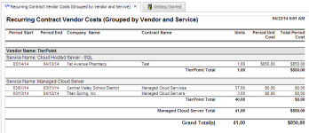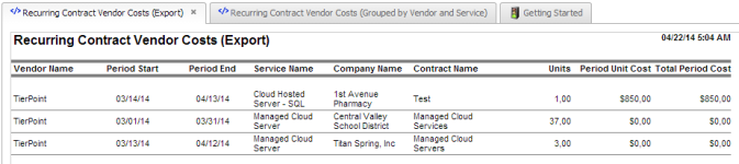 | Beschreibung | Drei Berichte, die Lieferantenkosten für Services anzeigen, die Sie Kunden bieten, um die tatsächliche Rentabilität auf Vertragsebene zu bestimmen. |
