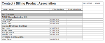 Kontakte, denen ein auf Regeln basierter Abrechnungsartikel zugewiesen ist, nach Abrechnungsartikel und dann nach Firma gruppiert. Beinhaltet die Gültigkeitsdaten der Zuweisung. |