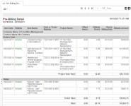 Posten Ihrer eigenen Firma sind in diesem Bericht nicht beinhaltet. Um einen Bericht über Posten Ihrer eigenen Firma zu erstellen, führen Sie den Bericht „Details vor der Abrechnung (Ihre eigene Firma)“ aus.