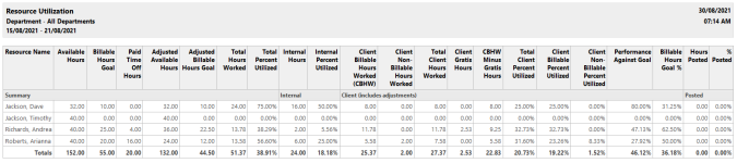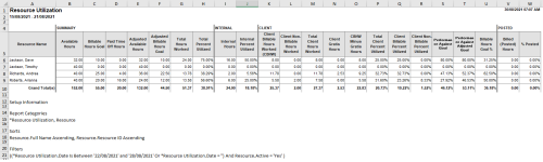 - Um die Daten für einen einzelnen Mitarbeiter anzuzeigen, klicken Sie auf seinen Namen im Bericht, um eine Ansicht des Auslastungsberichts für diesen Mitarbeiter zu öffnen.