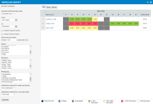 Am oberen Rand des Berichts können Sie über Umschaltflächen auswählen, wie Sie die Verfügbarkeit von Mitarbeitern anzeigen möchten: pro Tag, pro Woche oder pro Monat.