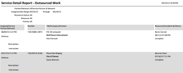 | Service-Partner/Netzwerk (outgesourcte Arbeit) | Der Name des Service-Partners oder des Outsourcing-Netzwerks, die das Ticket empfangen haben. |