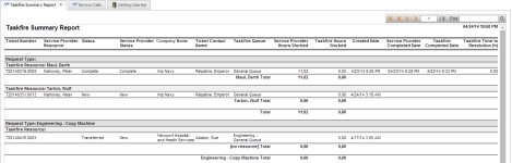 | Beschreibung | Dieser Bericht bietet Informationen über Taskfire-Tickets, einschließlich der Zeit bis zur Lösung für den Taskfire-Kunden. Die Informationen sind nach Anfrageart und Taskfire-Mitarbeiter gruppiert. |