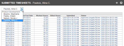 | Beschreibung | Zeigt eine Liste der eingereichten Stundenzettel nach Mitarbeiter an. Siehe Eingereichte Stundenzettel verwalten. |