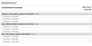 | Beschreibung | Alle nicht eingereichten Stundenzettel nach Mitarbeiter; nach Zeiterfassungsgenehmiger, Abteilung, Mitarbeiter und Datumsbereich gefiltert. Mit einem Klick können Sie Mitarbeiter benachrichtigen, dass deren Stundenzettel noch nicht eingereicht wurden. |