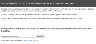 - Wenn Sie kein Autotask-Benutzer sind, können Sie dennoch die Einladung annehmen und ein Service-Partner werden. Klicken Sie auf Neues Benutzerkonto erstellen. Ein Formular wird geöffnet, in dem Sie ein Konto im Subunternehmer-Portal von Autotask PSA erstellen können.
