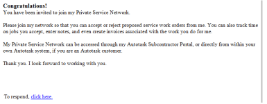 Wenn Sie von einem anderen Autotask PSA-Kunden eingeladen werden, deren Service-Partner zu werden, geschieht Folgendes: