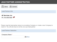Der Name der neuen Firma erscheint im Feld „Firmenname“ auf der Seite „Lead-Partner-Administration“.