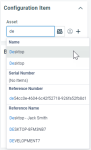 Während Sie dies eingeben, werden immer weniger übereinstimmende Einträge angezeigt. Übereinstimmungen werden nach Name, Seriennummer, Referenznummer und Referenzname gruppiert. Ein Gerät kann in einer oder mehreren Gruppen aufgelistet werden, wenn eine Übereinstimmung vorhanden ist.