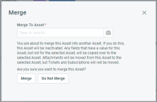 - Tickets: Das Zusammenlegen und Aufnehmen von Tickets wird verwendet, um zwei oder mehr Tickets für dasselbe Problem bei derselben Firma zu vereinen. Die Optionen für das Zusammenführen von Tickets sind bidirektional, je nachdem, welches Ticket Sie offen halten möchten und an welchem Ticket Sie gerade arbeiten. Um das aktuelle Ticket offen zu halten, würden Sie andere Tickets darin „aufnehmen“. Um das aktuelle Ticket zu schließen und seine Inhalte an ein anderes zu übertragen, würden Sie es in das andere Ticket „zusammenlegen“. Siehe Tickets zusammenlegen.