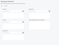 | Mitarbeiter | Klicken Sie über dem Feld Mitarbeiter auf Laden, um Mitarbeiter und Arbeitsgruppen zu benachrichtigen, die nicht bei den rollenbasierten Empfängern enthalten sind. Klicken Sie in einigen Formularen in das Auswahlfeld und beginnen Sie mit der Eingabe oder öffnen Sie das Auswahlfenster. |