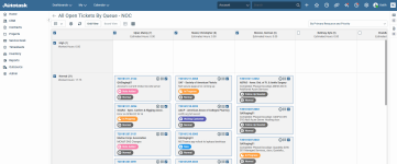 Mithilfe von Boards können Sie Tickets in einem Kanban-ähnlichen Layout organisieren, in dem nach voreingestellten Kriterien in Spalten und Zeilen gruppiert werden kann. Sie können sie flexibel bearbeiten, indem Sie die Tickets zwischen Spalten und Zeilen verschieben. Auf Boards kann über Ticket-Widgets und in Drilldown-Rastern in Ticket-Widgets zugegriffen werden, als auch über die Seite Mein Arbeitsplatz & meine Queues Sie sind für Widgets verfügbar, die auf den Haupt-Dashboards erscheinen. Sie sind nicht für Widgets verfügbar, die auf den Firmensseiten oder im Kundenportal erscheinen.