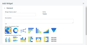 Wählen Sie den Widget-Typ aus. Informationen über Autotask-Objekte und Widget-Typen finden Sie unter Widget-Typen und visuelle Darstellungstypen. |