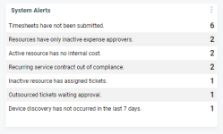 Autotask überprüft eine bestimmte Gruppe von Routineaktivitäten in mehreren Bereichen. Wenn die Funktion „Tägliche Meldungen“ aktiviert ist, wird Ihre Datenbank alle 24 Stunden einmal überprüft, um diese Routineaktivitäten auszuwerten. Wenn eine oder mehrere dieser Aktivitäten allem Anschein nach zu lange inaktiv waren oder ein Status auf ein mögliches Problem hinweist, wird eine Meldung generiert. Diese Meldungen können einem beliebigen Benutzer angezeigt werden (Ihre Zugriffsrechte bestimmen Ihren Zugriff auf Meldungsdaten).