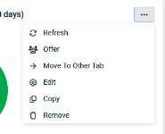 Wenn Sie berechtigt sind, Dashboard-Widgets hinzuzufügen und zu bearbeiten, haben Sie fast uneingeschränkte Kontrolle über Widgets auf persönlichen Registerkarten. Sie können auf die meisten Verwaltungsfunktionen für Widgets über das Widget-Menü zugreifen. Dies wird angezeigt, wenn Sie den Mauszeiger über die drei Punkte in der oberen rechten Ecke des Widgets bewegen.