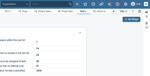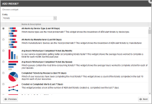 Klicken Sie auf einer Dashboard-Registerkarte auf die Schaltfläche Widget hinzufügen. Die Schaltfläche ist ausgegraut, wenn Sie die Höchstzahl von 24 Widgets auf der Registerkarte erreicht haben.