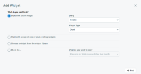 - Wählen Sie Mit der Kopie eines Ihrer vorhandenen Widgets starten und klicken Sie auf Weiter.