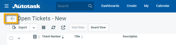 Um von der Rasterliste zur Dashboard-Registerkarte zurückzukehren, klicken Sie auf den Zurückpfeil: