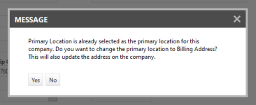 Wenn Sie auf Jaklicken, d. h., wenn ein anderer Standort als Hauptstandort zugewiesen ist, aktualisieren die Adressinformationen dieses Standorts den Firmendatensatz. Kontakte, Geräte und Tickets, die dem Hauptstandort zugeordnet sind, werden ebenfalls aktualisiert.