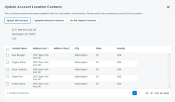 Wenn Sie die Adress- oder Telefonnummernfelder der Firma oder die Adresse des Hauptstandorts oder eines anderen Standorts bearbeiten, der Kontakten zugeordnet ist, haben Sie die Möglichkeit, die Kontaktadressen und Telefonnummern gleichzeitig zu aktualisieren. Um die Seite zu öffnen, nutzen Sie den/die Pfad(e) im vorstehenden Abschnitt Sicherheit und Navigation.