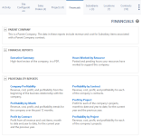 - Gewinndetails nach Projekt : Dieser Bericht liefert detaillierte Informationen zu Umsatz, Kosten und Gewinn für die ausgewählten Firmen, nach Projekt gruppiert.