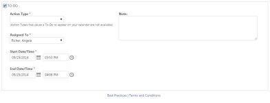 Die Felder für Firmen- und Kontaktnamen, die im Standardformular „To-Do hinzufügen“ angezeigt werden, erscheinen nicht auf der Seite „Kontaktmaßnahme“. Sie werden bei der Ausführung automatisch mit den Kontaktinformationen ausgefüllt.