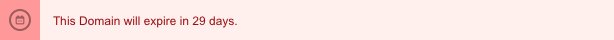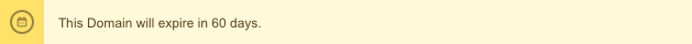 | Domain-Ablauf (Ablaufdatum, Ablaufzeit) | Datum und Uhrzeit der Domain laufen ab, es sei denn, die Angaben werden erneuert. Datum und Uhrzeit werden in der lokalen Zeitzone des Benutzers angezeigt. Wenn die Domain in weniger als oder genau 60 Tagen abläuft, wird oben auf der Geräteseite eine gelbe Warnmeldung angezeigt: Wenn die Domain in weniger als oder genau 30 Tagen abläuft oder bereits abgelaufen ist, erscheint eine rote Warnmeldung. |