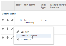 Angebotene Artikel können sortiert, bearbeitet, als optional/nicht optional eingerichtet und jederzeit über die Inline-Symbole oder das Rechtsklickmenü gelöscht werden.