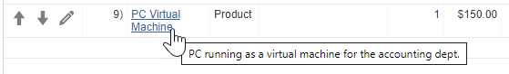Fahren Sie mit der Maus über eine Belegzeile, um die Postenbeschreibung anzuzeigen. Um die Beschreibung zu bearbeiten, klicken Sie mit der rechten Maustaste und wählen Sie Posten bearbeiten aus.