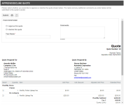 - Die Angebotsansicht mit der Aufforderung zum elektronischen Genehmigen oder Ablehnen des Angebots