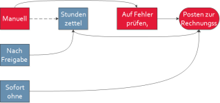 Mit dieser Einstellung wird der Arbeitsaufwand dem Kunden gebucht, sobald der Stundenzettel des Mitarbeiters genehmigt wird. Diese Einstellung kann kleineren Firmen, bei denen der Zeiterfassungsgenehmiger auch gleichzeitig der Abrechnungsgenehmiger ist, einen Arbeitsschritt sparen.