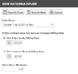 Um einen anderen Satz für den Vertrag einzurichten, klicken Sie auf das Optionsfeld für Vertragsmäßigen Stundensatz verwenden und geben Sie einen Stundensatz ein. |