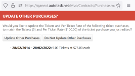 - Um die Änderungen auf alle aufgelisteten Käufe anzuwenden, wählen Sie Andere Käufe aktualisieren aus. Wenn Sie Andere Käufe nicht aktualisieren auswählen, wird das Dialogfenster geschlossen, und die Aktualisierungen werden nur auf den ursprünglichen Kauf angewandt.