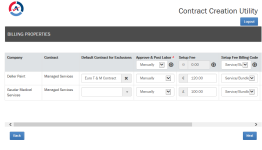 On the next page, you configure the billing properties for the contracts. Some fields are specific to the selected contract type.