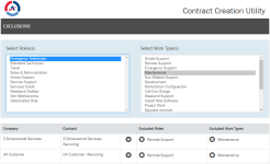 If you exclude certain roles and work types from some contracts and use default exclusion contracts to bill for them, it is a best practice to create the default exclusion contracts first. This allows you to specify them in the utility when you create additional contracts.