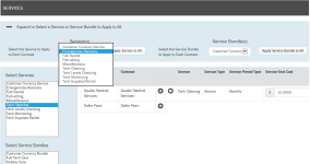 - Click the drop-down menu in the Service(s) or Service Bundle(s) field and select services and/or service bundles.