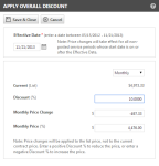 - Klicken Sie auf Speichern & Schließen, nachdem Sie Ihre Zahlen überprüft haben und mit Ihren Änderungen zufrieden sind, um die Änderungen anzuwenden. Die Änderungen, die Sie über die Seite „Gesamtrabatt anwenden“ anwenden, überschreiben alle vorherigen Preisänderungen an individuellen Servicepaketen oder Services.