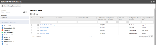 - Alle Geräte anzeigen, die über ein Garantieablaufdatum, ein Gültig-bis-Datum (SSL-Zertifikate) oder ein Ablaufdatum (Domains) verfügen. Siehe Ablaufdaten verwalten.