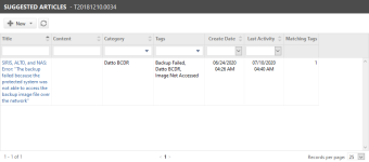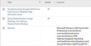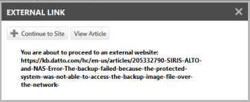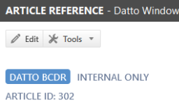 Um das Konzept einer globalen Knowledge Base einzuführen, hat Datto Beiträge mit Verweisen auf die BCDR-Knowledge Base-Artikel in der Datto Knowledge Base erstellt. Aus Sicht von Autotask ist dies eine externe Knowledge Base, d. h., der Inhalt des Beitrags wurde weder in Autotask erstellt noch dorthin importiert. Eine Erörterung der Knowledge Base-Inhaltsarten finden Sie unter Referenzlink.