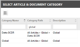 Damit globale Beiträge gruppiert bleiben, haben wir die Beitragskategorie Global in der Kategorie Alle Beiträge erstellt und die Unterkategorie Datto BCDR darunter. Sie können ganz einfach den entsprechenden Filter auf der Registerkarte Erweiterte Suche anwenden.![]()